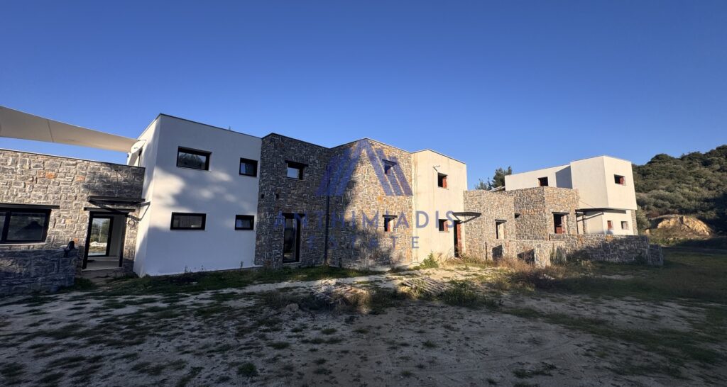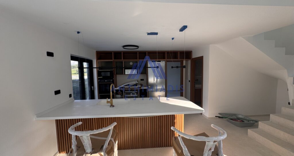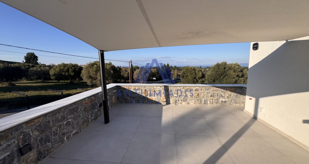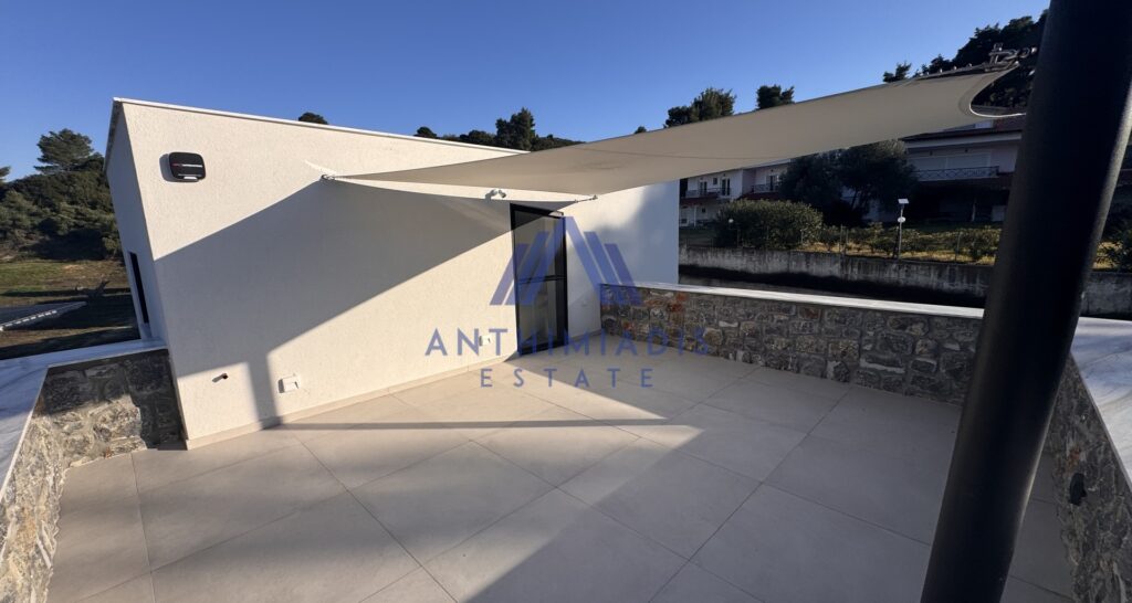 FOR SALE newly built three-level maisonette of 205 sq.m. on a plot of 544 sq.m. in the beautiful area of ​​Pefkohori. Built in 2026. It consists of 4 bedrooms, 2 kitchens, 2 living rooms, 3 bathrooms and a storage room. The house has a wonderful view of the sea and the forest. It also has air conditioning, large verandas, parking and a large swimming pool.